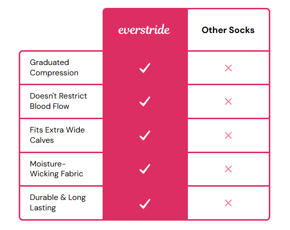 Everstride compression socks use a 15-20mmHg graduated compression to combat swelling.